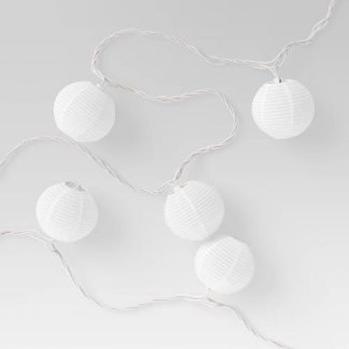 | "Guirnaldas de luces enchufables para uso en interiores o exteriores Cuenta con 10 mini luces incandescentes en cable blanco. Pantalla de globo de nailon alrededor de cada foco individual. Incluye 4 bombillas de repuesto y 1 fusible de repuesto. Ideal para decorar tu patio, terraza u otro espacio al aire libre." target | |