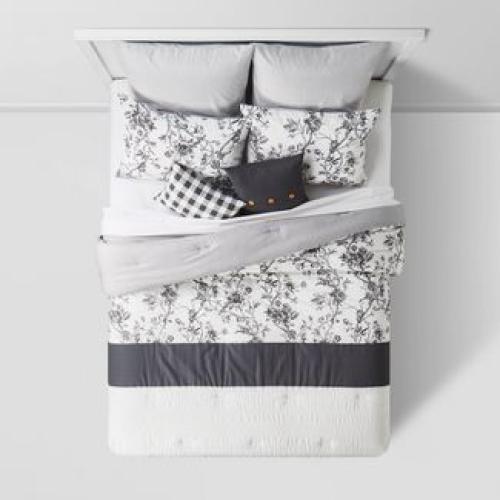 Juego de edredón reversible Brookton Farmhouse Floral de 8 piezas Carbón vegetal - Threshold™ | |