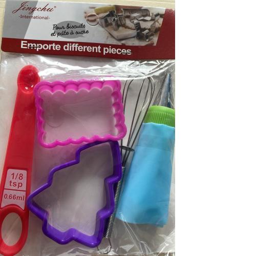| DOS MOLDES PLASTICOS, 1 CUCHARA MEDIDORA, 1 MINI ESPUMADOR,1 MINI MANGA PASTELERA | |