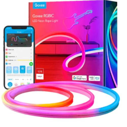 | Posibilidades infinitas: Añade un aspecto expresivo y personalizable de cuerda de neón a la sala de juegos, sala de estar, dormitorio y decoraciones navideñas para una emocionante experiencia de iluminación de bricolaje. Con resistencia al agua IP67, nuestras tiras de luces de neón se pueden utilizar como decoraciones al aire libre. (Nota: el adaptador y la caja de control no son impermeables). Color RGBIC dinámico: deja que tu imaginación corra bien con la tecnología Govee RGBIC. Establece más color a la vez en la cuerda de luz de neón flexible y también muestra efectos animados y fluidos basados en la naturaleza, vacaciones y emociones. Sincronización con música: eleva tu tiempo libre, tiempo de juego con luces de juego de neón, que utiliza un micrófono incorporado para detectar, música y audio de juegos y combina con efectos que reaccionan en tiempo real para emocionantes momentos de entretenimiento en casa. Añade más diversión a tu mesita de noche y decora | |
